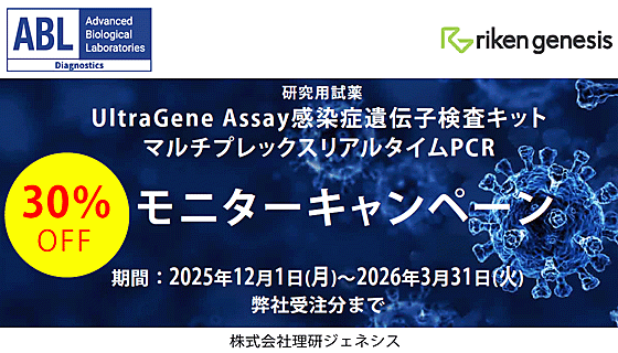 3/31まで!理研ジェネシス「UltraGene Assays感染症遺伝子検査キット」30%OFFモニターキャンペーン