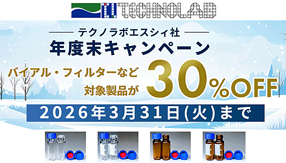 3/31まで!テクノラボエスシィ「バイアル・フィルターほか30%OFF」年度末キャンペーン