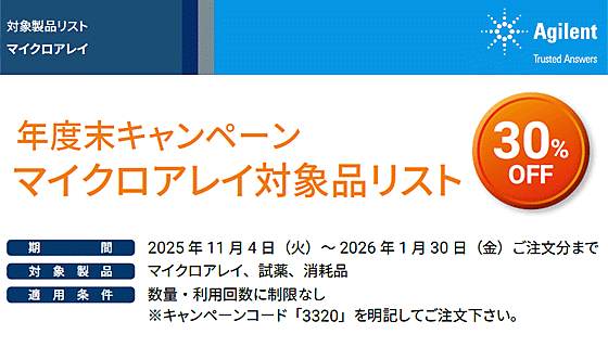 1/30まで!アジレント「マイクロアレイ対象品」年度末キャンペーン