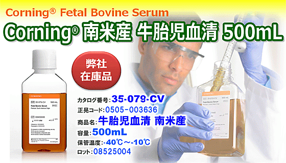 弊社在庫「Corning® 南米産 牛胎児血清(FBS)500mL」ご案内