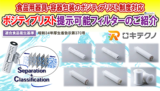 「食品ポジティブリスト制度対応」製造フィルターご紹介