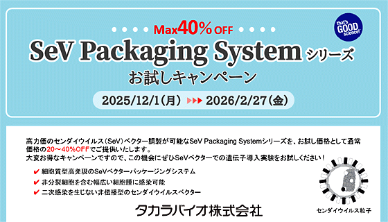 2/27まで!タカラバイオ「SeV Packaging Systemシリーズ」お試しキャンペーン