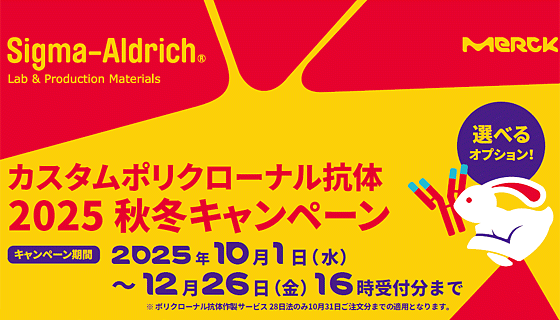 TOPICS トピックス CATEGORY すべて キャンペーン情報 学会・セミナー情報 助成金情報 その他 2025.10.01 キャンペーン情報 12/25まで!コスモ・バイオ「2025 秋・冬キャンペーン」 2025.10.01 キャンペーン情報 12/25まで!GFK社ボリューム増し増しキャンペーン 2025.10.01 キャンペーン情報 12/25まで!抗体・ペプチドキャンペーン「秋の陣」 2025.10.01 キャンペーン情報 11/28まで!プロテインテック社「秋の特典キャンペーン2025」 2025.10.01 キャンペーン情報 12/26まで!シグマアルドリッチ「カスタムペプチド」キャンペーン 2025.10.01 キャンペーン情報 12/26まで!メルク「カスタムポリクローナル抗体」キャンペーン 2025.10.01 キャンペーン情報 (株)シンプロジェン「長鎖・高難度配列の人工遺伝子合成」ご紹介 2025.10.01 キャンペーン情報 12/25まで!ジーエルサイエンス「PFAS分析用バイアル」25%OFFキャンペーン 2025.10.01 キャンペーン情報 HORIBA アンモニア・硝酸態窒素計「HC-200N」を発売! 1…89101112…31