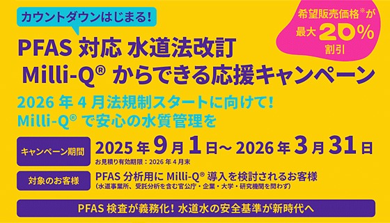 3/31まで!メルク「PFAS対応 水道法改訂」Milli-Q®からできる応援キャンペーン