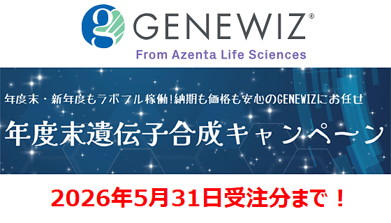 5/31まで!GENEWIZ「年度末遺伝子合成キャンペーン」