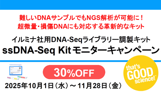 11/28まで!タカラバイオ「ssDNA-Seq Kit」モニターキャンペーン